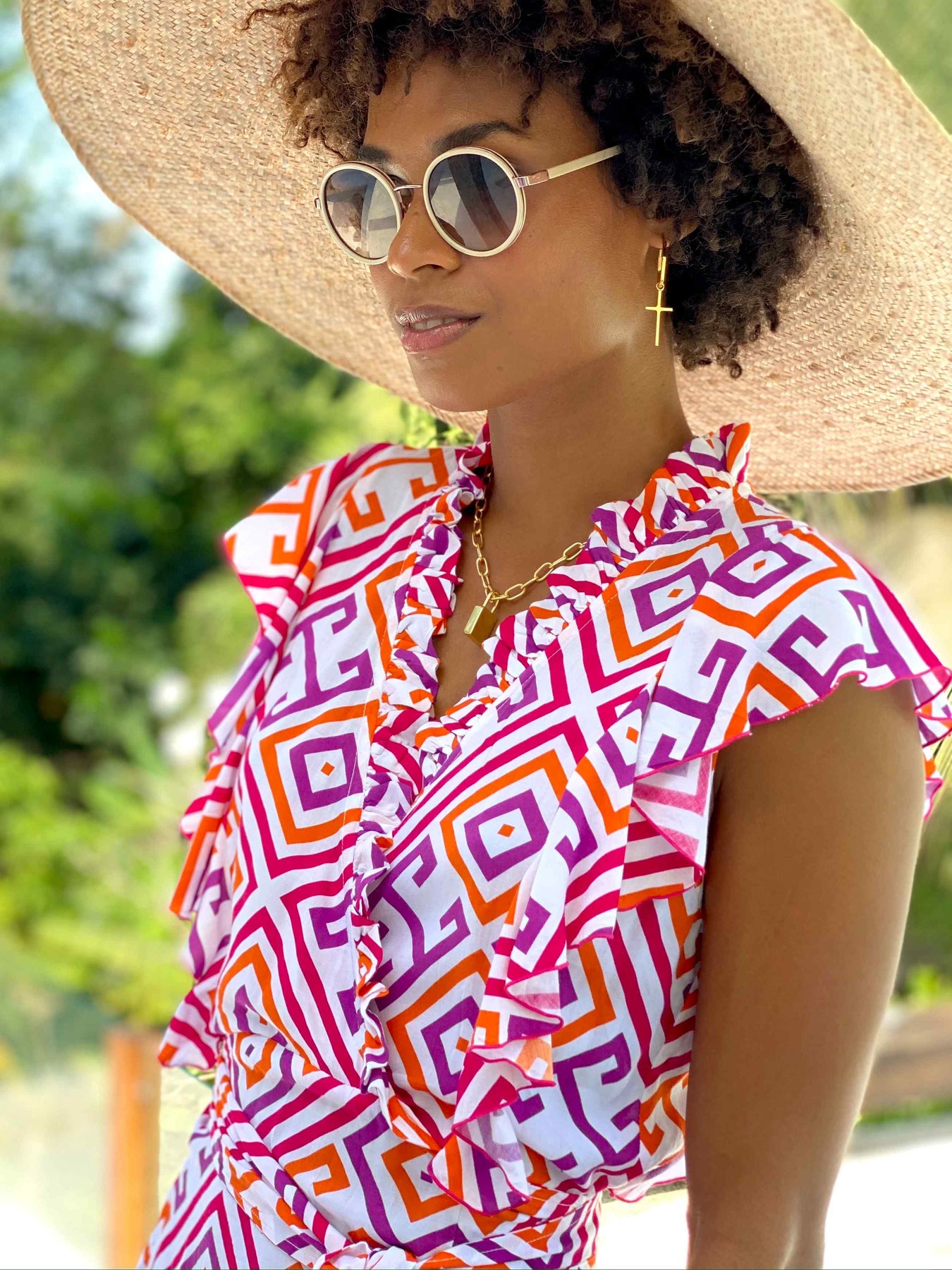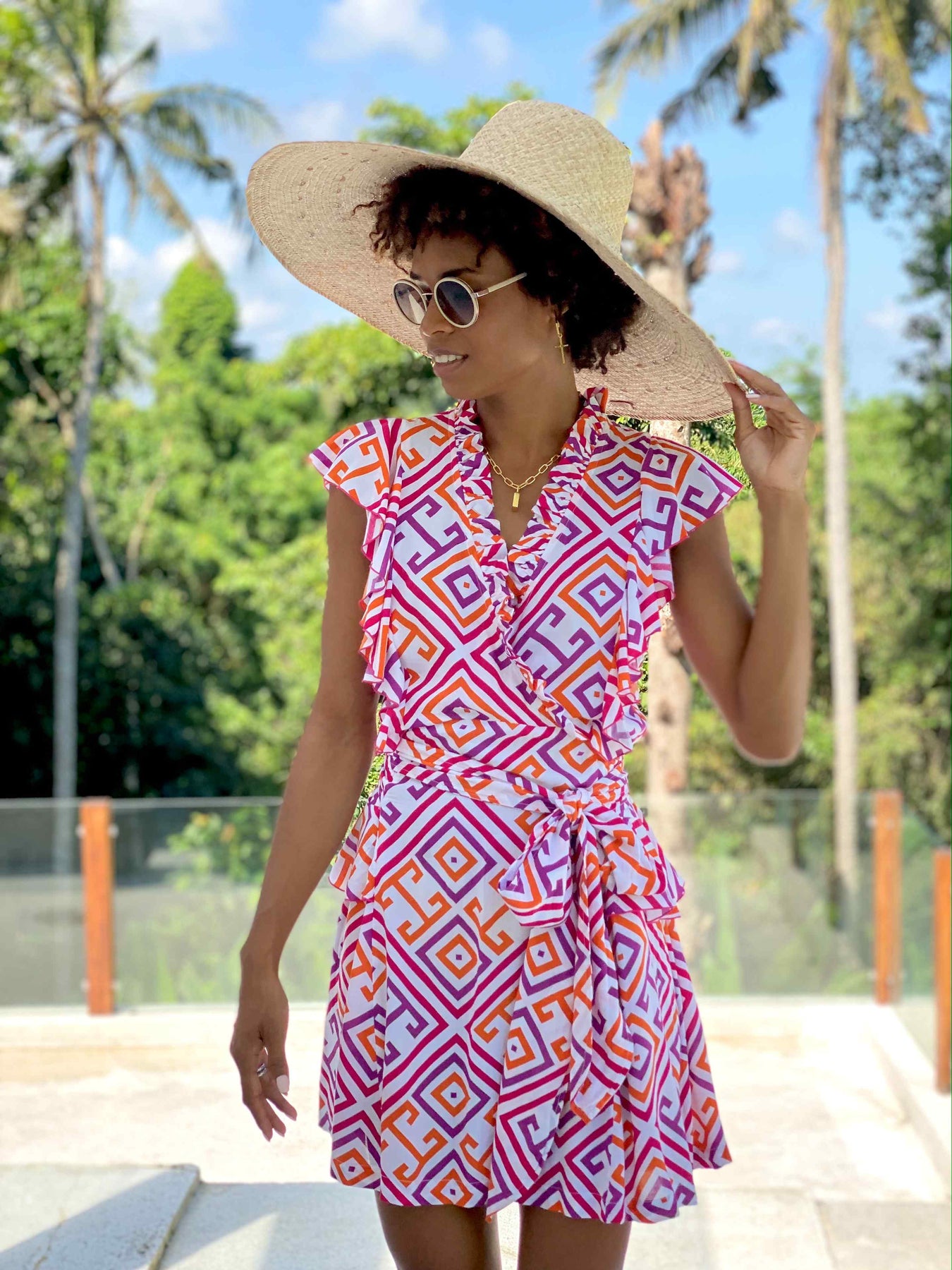 Feather makes you feel like the best possible version of yourself - Chiana is cut in a wrap-effect silhouette, it nips in at the waist before falling to a floaty hem. Notice the contrasting white cotton feminine ruffle and peplum details. Wear yours with heels or summer sandals. Fit is true to size. Model wears size Small.