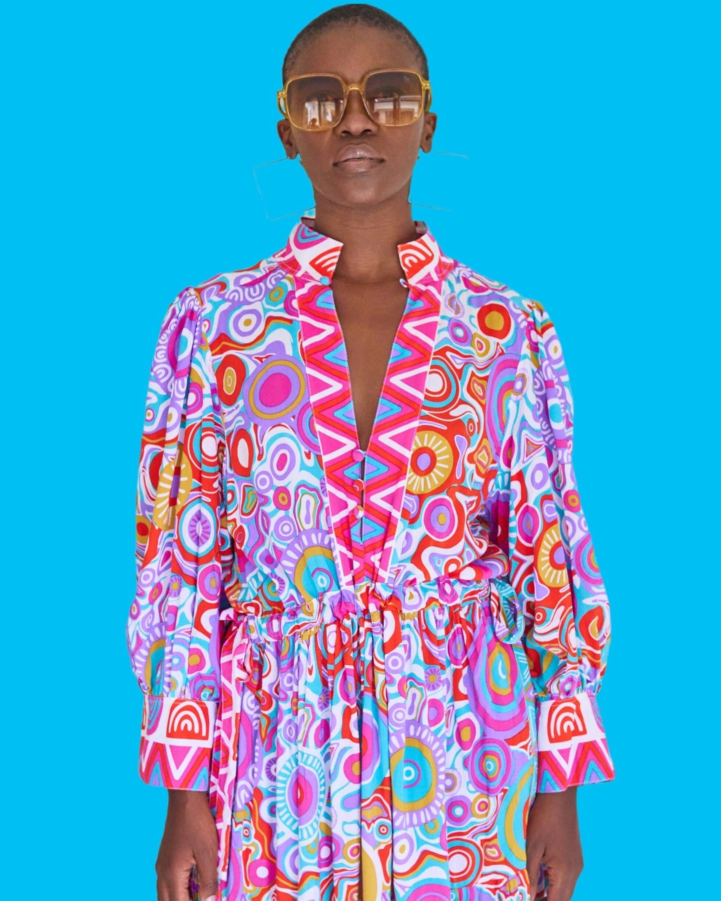 Introducing our stunning Gabor Long Dress in the captivating Aboriginal print, Songlines. This dress is a true masterpiece, adorned with intricate patterns that pay homage to ancient traditions. Crafted for elegance and comfort, it features adjustable ties on either side, allowing you to create a personalized fit that accentuates your unique style. The Gabor Long Dress is perfect for any occasion, whether you're strolling along the beach or attending a summer soirée.