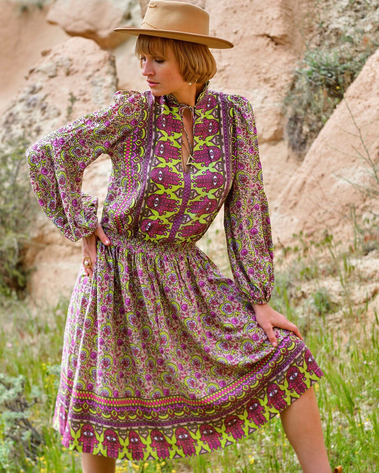 One of my personal favorites, the Juno Mystic Dress is all about clean lines and effortless wear. With an A-line skirt and subtle elastication at the waist, it offers a flattering shape without feeling restrictive. The neckline adds a touch of versatility—wear it tied for a polished look or leave it open for a more relaxed feel.