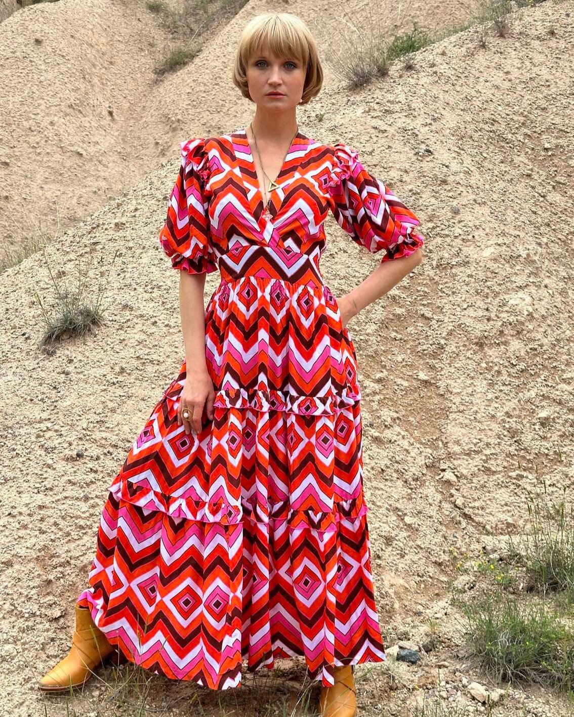 This season, Orelia arrives in the Magic print—an Amazonian-inspired design with depth and impact. Whether styled for an event or worn casually with flats, this bestselling dress delivers effortless confidence and style.