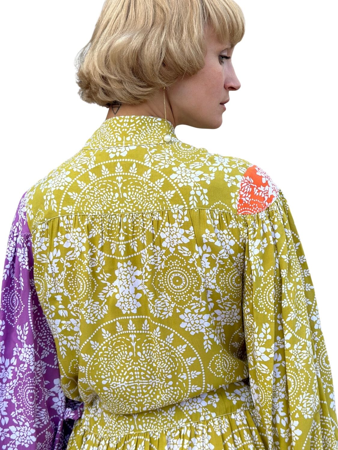 The Vima Dress is a versatile silhouette with considered detail and layered printwork. Crafted in our soft Whisper print, the dress is elevated by panels of the sacred Mandela print, placed with intention to bring structure and dimension.