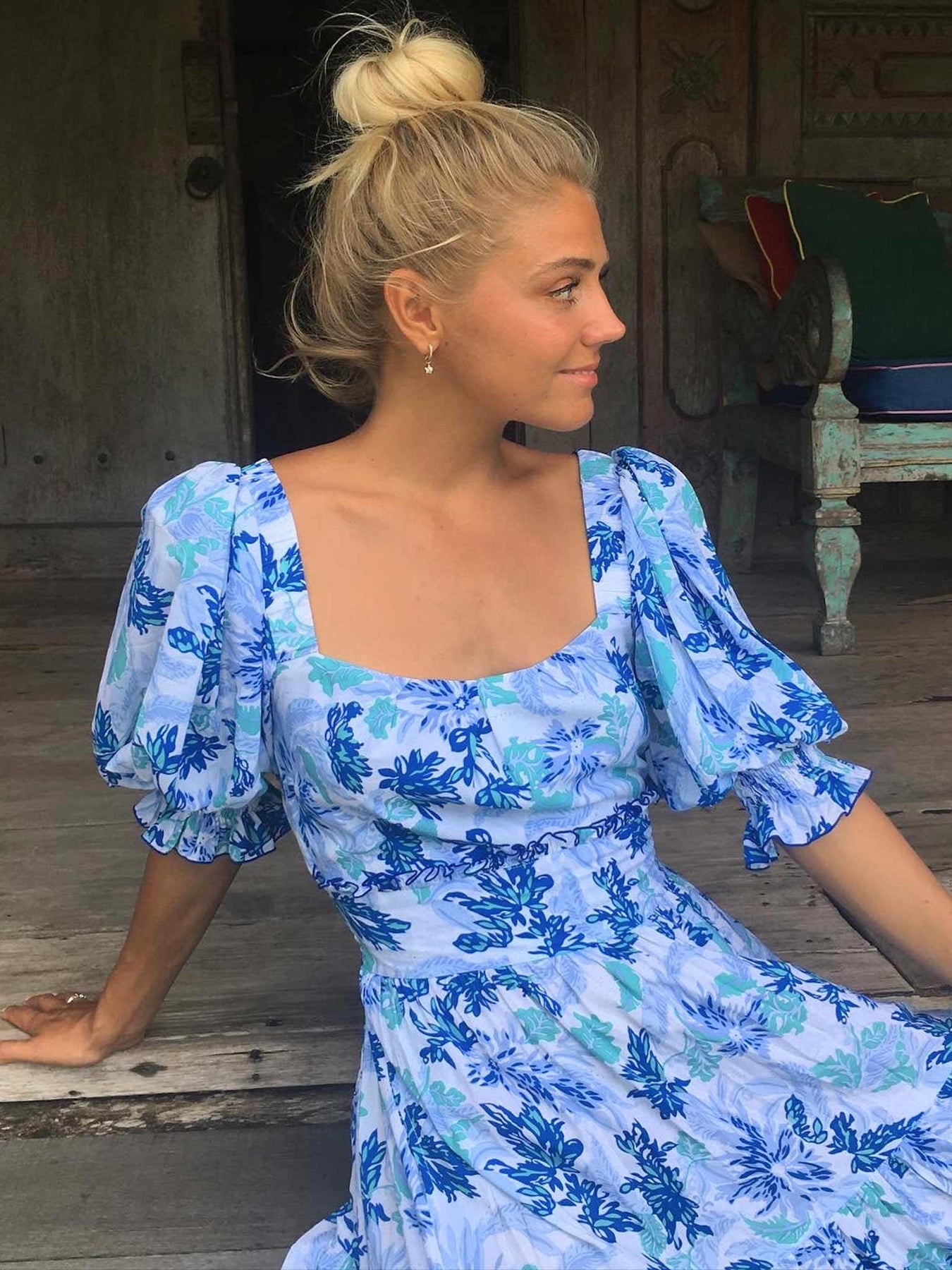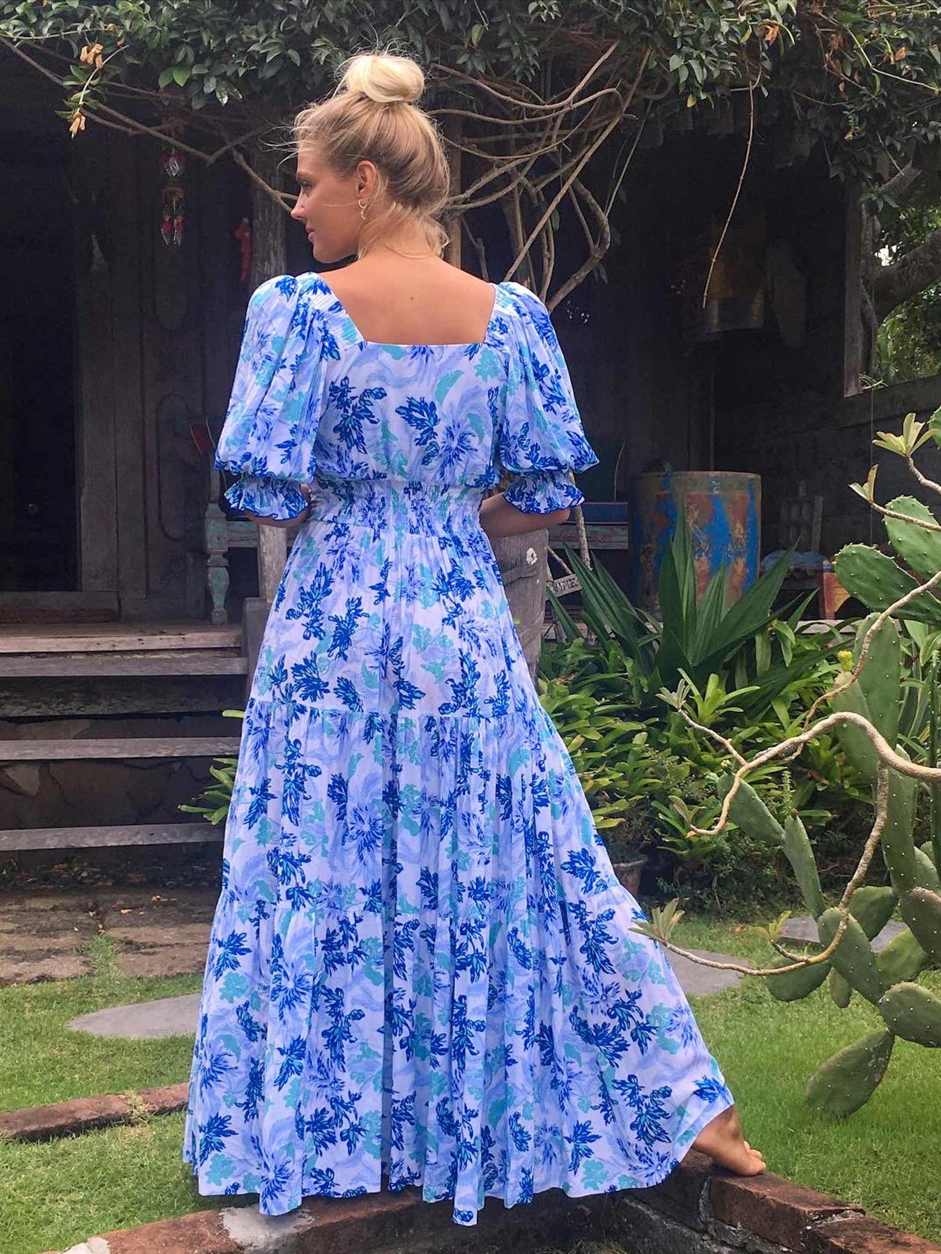 Feather's 'Solstice' dress is so airy in both its fabrication and silhouette, making it such a lovely choice for warm days. Designed smocked bodice and puffed shoulders supported by padding that can be removed it you want and can be styled on or off the shoulders. Solstice also has a small elastication in the back waist making it truly comfortable.